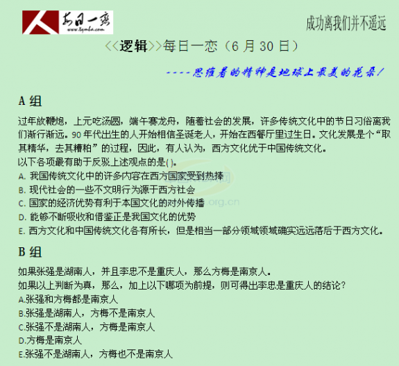 【太奇MBA 2015年6月30日】MBA邏輯每日一練