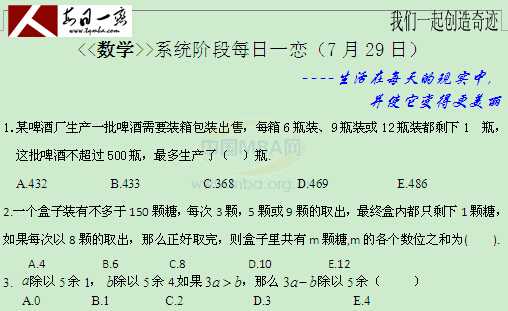 【太奇MBA 2015年7月29日】MBA數(shù)學(xué)每日一練