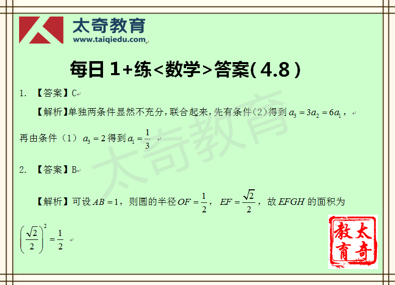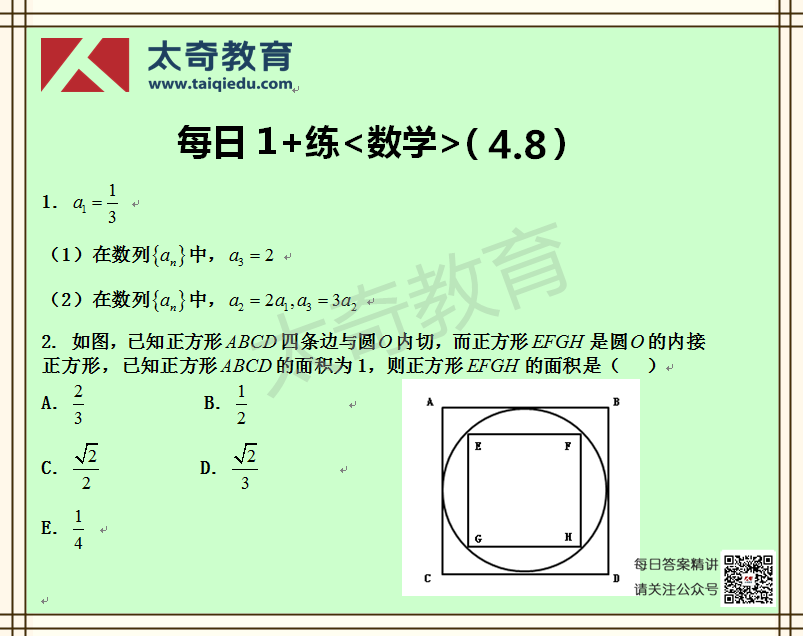 太奇MBA管理類聯(lián)考數(shù)學每日一練 4-8