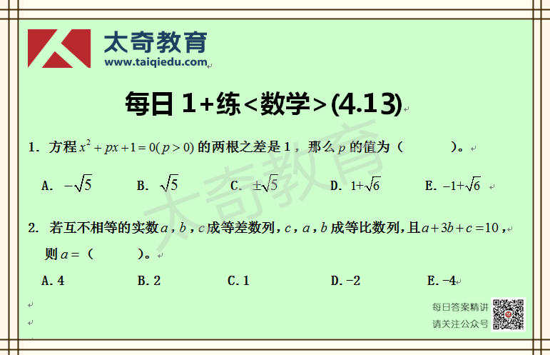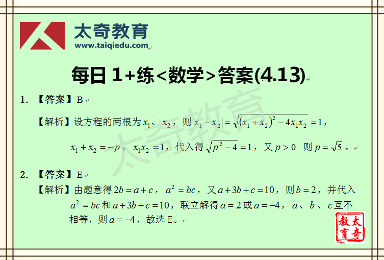 太奇MBA管理類聯(lián)考數(shù)學(xué)每日一練 4-13