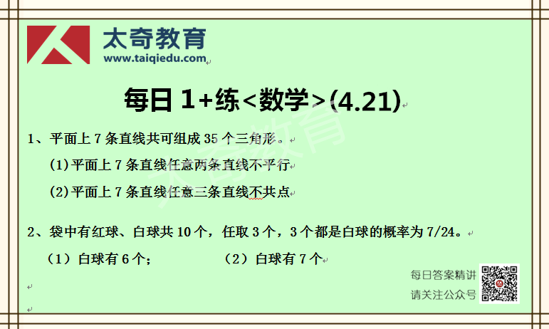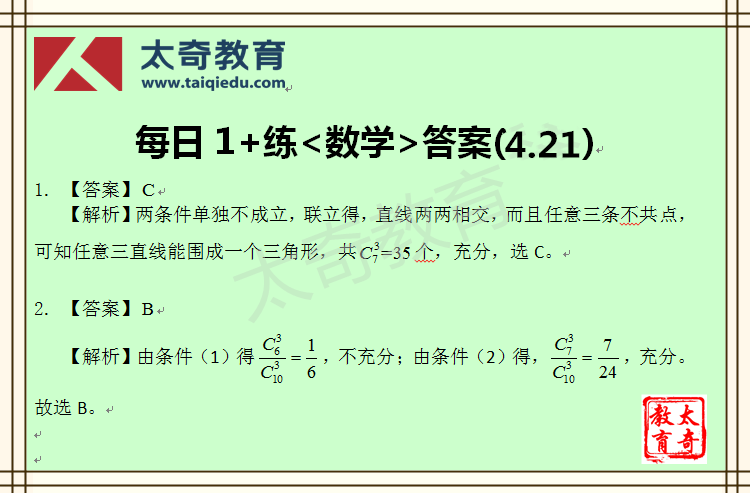 太奇MBA管理類聯(lián)考數(shù)學(xué)每日一練 4-21