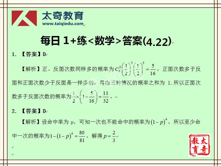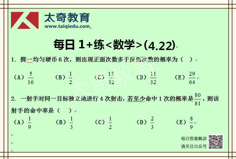 太奇MBA管理類聯(lián)考數(shù)學每日一練 4-22