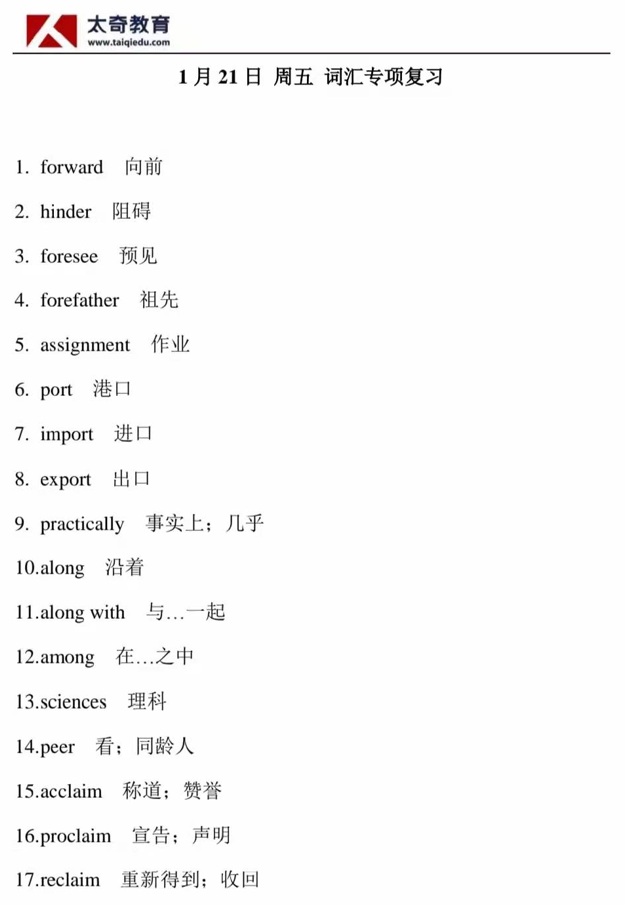 1月21日詞匯專(zhuān)項(xiàng)練習(xí)