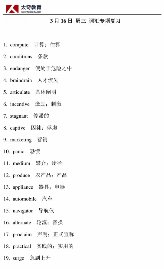 3月16日詞匯專項練習(xí)
