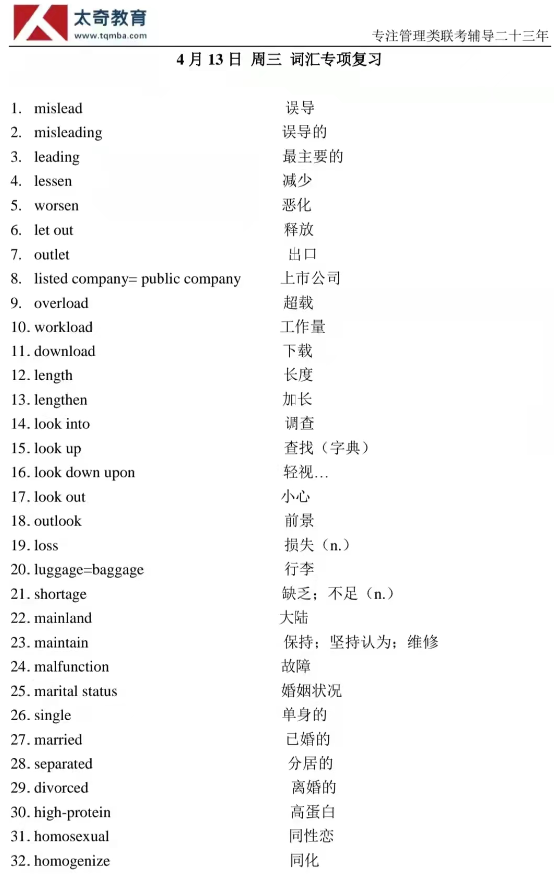 4月13日詞匯專項練習