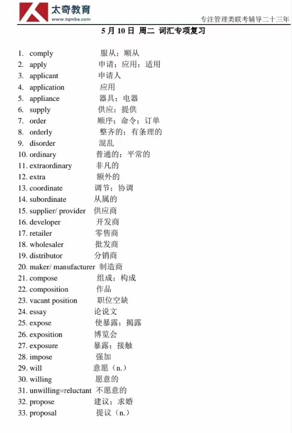 5月10日詞匯專項練習