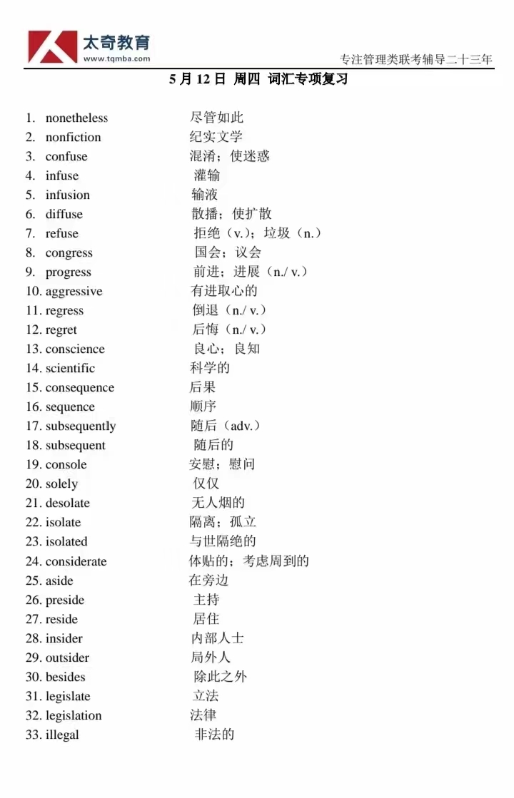 5月12日詞匯專項練習