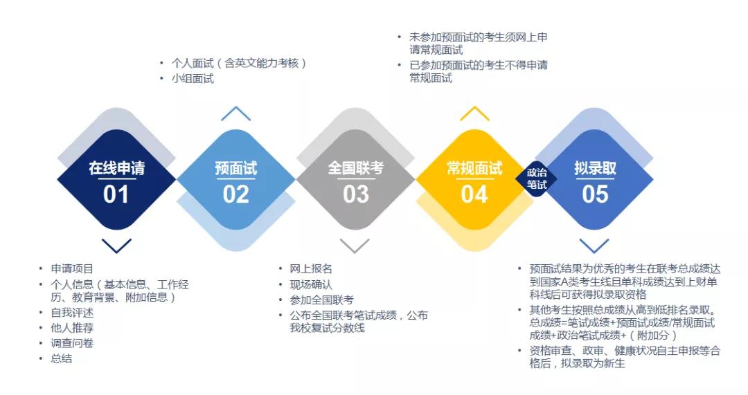 2)預(yù)面試良好。預(yù)面試獲得良好的考生給予附加分20分或附加分10分。當(dāng)年聯(lián)考總成績達(dá)到國家A類線且單科成績達(dá)到上財(cái)單科線,附加分計(jì)入總成績進(jìn)行從高到低排名錄取。