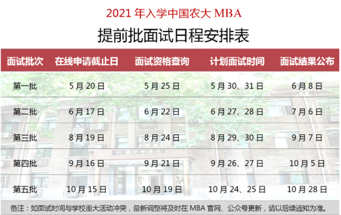 注:農(nóng)大MBA是在北京MBA院校當(dāng)中今年出政策的“領(lǐng)頭羊”之一,從第一批面試6月8日開始一直到十月底最后一次準(zhǔn)備時(shí)間長達(dá)5個(gè)月之久,也是給廣大備考生們留足了充裕的時(shí)間。