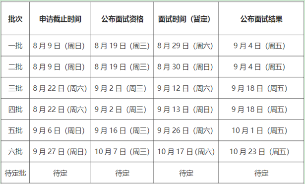 由于前兩批滿的過于快第三批也是提早開放,早早的在8月20日就已經(jīng)申請人數(shù)達到600上限,然后由于疫情原因?qū)W校提前把第三四批合并舉行、第五批8月25日開放申請,原定的第六批和待定批次也沒有繼續(xù)開放,太奇考生通過提前面試部老師的拔高以及職業(yè)經(jīng)歷梳理,材料通過率今年達到90%。確實今年受到疫情原因縮減面試了人數(shù),以及把每個批次學校做了規(guī)劃,把一些材料通過的人放到了下一批次調(diào)整面試時間,避免扎堆面試防控疫情,北航做的真的是很不錯。