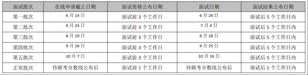 5. 在線(xiàn)申請(qǐng)日期對(duì)應(yīng)了指定面試批次及相關(guān)安排,書(shū)面材料的提交和審核將統(tǒng)一在面試環(huán)節(jié)進(jìn)行。