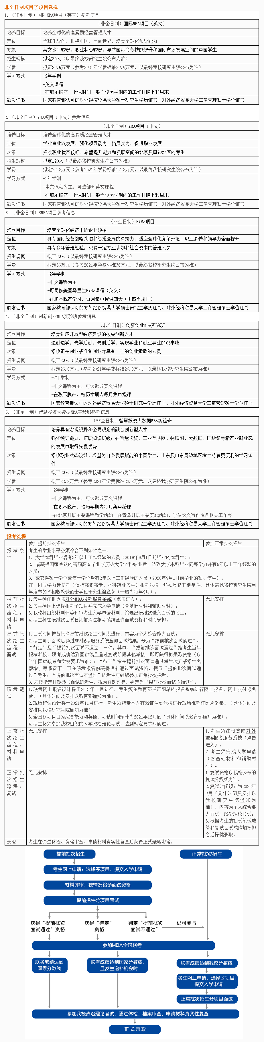 2022年對(duì)外經(jīng)濟(jì)貿(mào)易大學(xué)MBA項(xiàng)目(非全日制)招生政策: