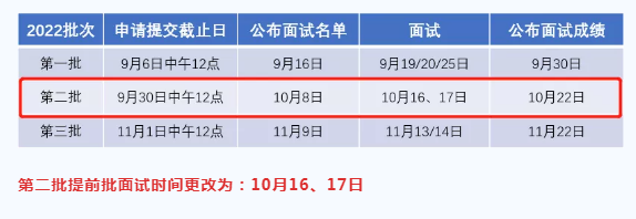 為讓廣大考生能在全國聯(lián)考報名截止前獲知提前批面試結(jié)果,提前做好充分準(zhǔn)備,人大MBA將第二批提前批面試的相關(guān)流程提前一周,具體時間如下: