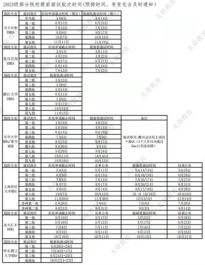 2023交大安泰MBA提前批面試日程公布