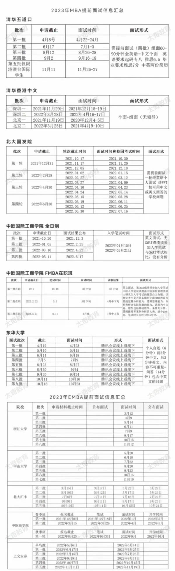 2023年部分院校提前面試批次時間匯總
