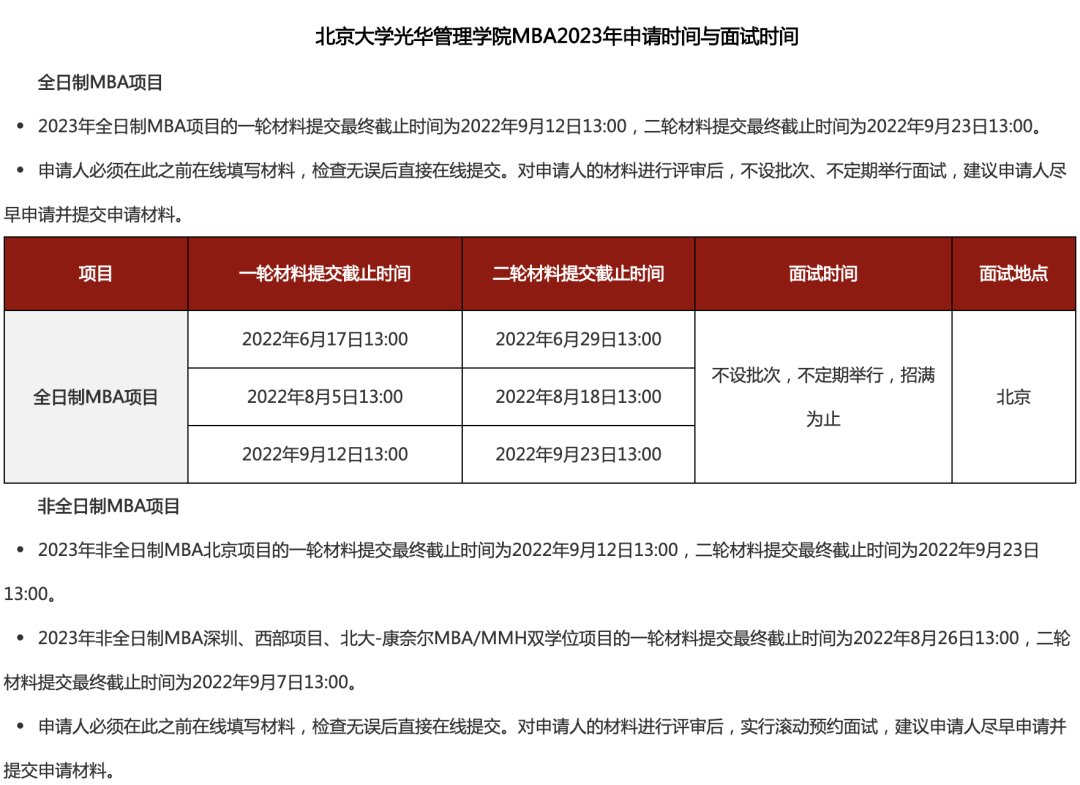 北京大學光華管理學院2023年MBA提前面試申請及時間安排