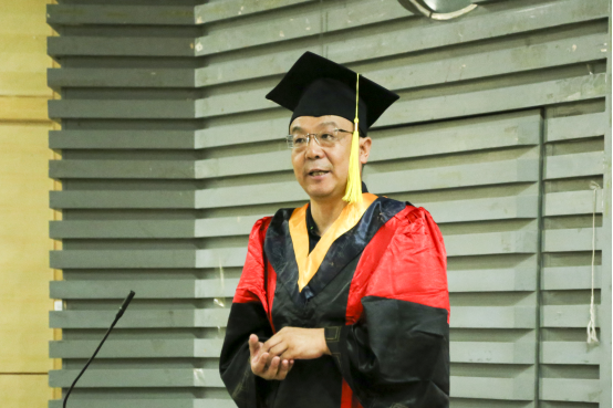 首先,北京郵電大學(xué)學(xué)術(shù)委員會(huì)主席張英海教授為學(xué)位授予儀式致辭。他對此次圓滿完成學(xué)業(yè)并獲得學(xué)位的EMBA、MBA、MEM、MPM學(xué)員表示熱烈的祝賀,同時(shí)對辛勤奉獻(xiàn)的教師們表示衷心的感謝,對支持同學(xué)們的親屬、父母表示崇高敬意。張英海教授表示,當(dāng)同學(xué)們走向課堂的時(shí)候,就已經(jīng)承擔(dān)起歷史責(zé)任,在父母、家庭、社會(huì)的責(zé)任之外,又開始了新的追求、新的夢想。他說,提出實(shí)現(xiàn)中國夢的時(shí)候,我們是要實(shí)現(xiàn)一個(gè)民族的偉大復(fù)興,實(shí)現(xiàn)我們的中國夢。這幾年祖國的科技事業(yè)、國防事業(yè)、社會(huì)主義建設(shè)事業(yè)突飛猛進(jìn),這在無形中就將祖國的中國夢、社會(huì)主義的強(qiáng)大等歷史重任放在我們肩上。所以在祝賀的同時(shí),更感受到同學(xué)們將來面對社會(huì)、家庭的責(zé)任。最后,張英海教授以習(xí)近平主席的“不忘初心”結(jié)束話題:不忘初心,不忘自己的責(zé)任;不忘初心,不忘自己的追求;不忘初心,不忘記并且勇敢擔(dān)負(fù)起今后家庭幸福、父母安康、祖國強(qiáng)大的光榮的責(zé)任!