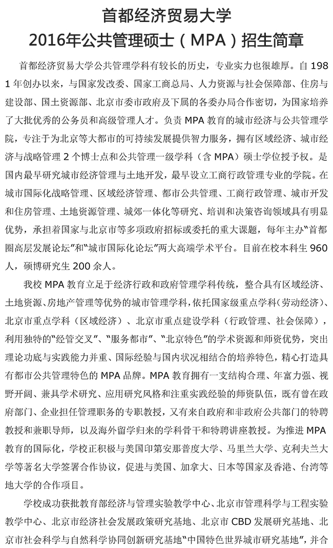 首都經(jīng)濟貿(mào)易大學公共管理碩士(MPA)招生簡章