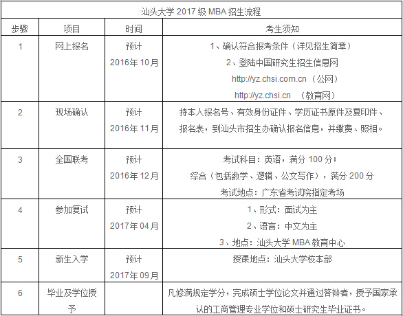 汕頭大學(xué)2017年工商管理碩士招生簡(jiǎn)章