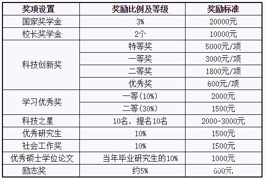 碩士生基礎(chǔ)獎(jiǎng)學(xué)金分為一等獎(jiǎng)和二等獎(jiǎng)兩個(gè)等級(jí)。一等獎(jiǎng)每人每年8000 元,二等獎(jiǎng)每人每年4000 元;在此基礎(chǔ)上,每人每月700 元,另外導(dǎo)師資助每人每月100—200 元。即:基礎(chǔ)獎(jiǎng)學(xué)金一等獎(jiǎng)每人每年不低于16400元;二等獎(jiǎng)每人每年不低于12400元。
