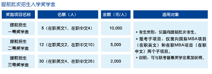 “MBA提前批次招生”將安排于2018年5月至11月底結(jié)束。對于準(zhǔn)備報(bào)考各個(gè)項(xiàng)目的考生,我們將從全部招生名額中安排較多比例的名額提供給提前批次招生批次的考生,以使優(yōu)秀的考生能選擇更優(yōu)先的渠道獲得錄取的機(jī)會(huì)。