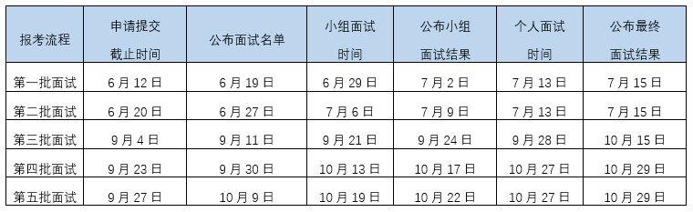 3.面試申請(qǐng)批次時(shí)間(如面試時(shí)間與學(xué)校重大活動(dòng)時(shí)間沖突,以后續(xù)通知為準(zhǔn))