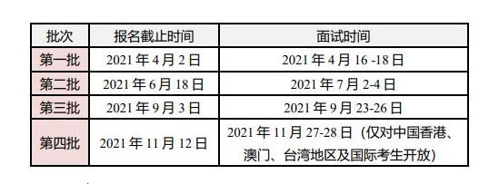 資料齊全且通過(guò)審核后,學(xué)院將以電子郵件的方式給予反饋,在各批次報(bào)名截止時(shí)間后按照相應(yīng)批次的面試時(shí)間統(tǒng)一安排面試??忌殧y帶考試通知上所要求的材料參加面試。面試時(shí)須攜帶所有資料原件進(jìn)行資格審查。通過(guò)面試者將獲得條件錄取資格。