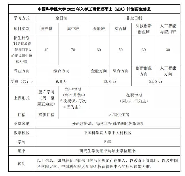 中國科學院大學2022年工商管理碩士(MBA)招生簡章