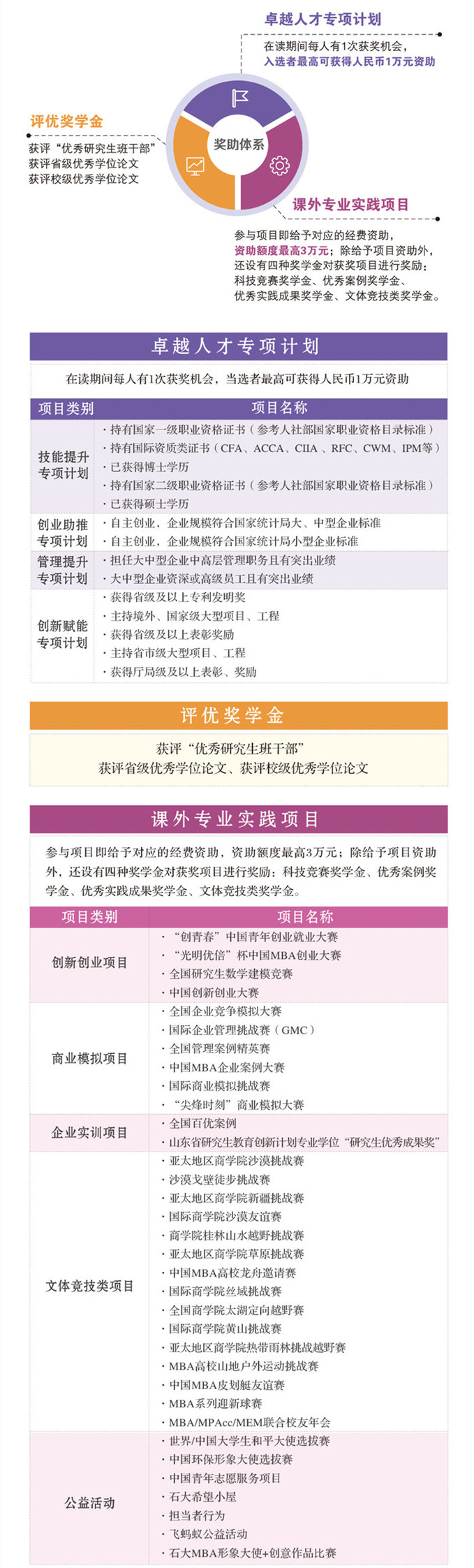 2015年學(xué)校MBA項(xiàng)目以?xún)?yōu)良的成績(jī)通過(guò)教育部合格評(píng)估。2016年參加全國(guó)首次專(zhuān)業(yè)學(xué)位水平評(píng)估,在第八、九批100余所MBA培養(yǎng)高校中位居前列,在山東10所MBA培養(yǎng)高校中位列前三。2020年學(xué)院獲評(píng)“最具特色MBA項(xiàng)目”、“中國(guó)商學(xué)院卓越運(yùn)營(yíng)獎(jiǎng)”等。2021年MBA研究生陶付文榮獲全國(guó)五一勞動(dòng)獎(jiǎng)?wù)?,王軍?huì)老師入選中國(guó)注冊(cè)會(huì)計(jì)師協(xié)會(huì)第二期會(huì)員培養(yǎng)(高端班)項(xiàng)目,是該期高端班35位注冊(cè)會(huì)計(jì)師會(huì)員中唯一一位來(lái)自高校的入選者。