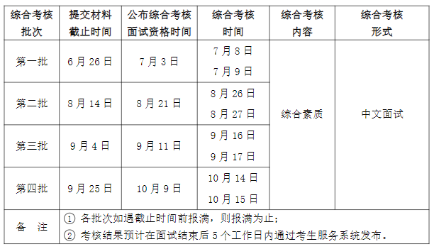 2、綜合考核安排綜合考核共分四個批次,考生僅可選擇其中一個批次進行申請。