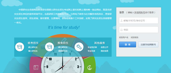 請(qǐng)考生用學(xué)信網(wǎng)的賬號(hào)登錄。沒(méi)有學(xué)信網(wǎng)賬號(hào)的,馬上注冊(cè)一個(gè)。
