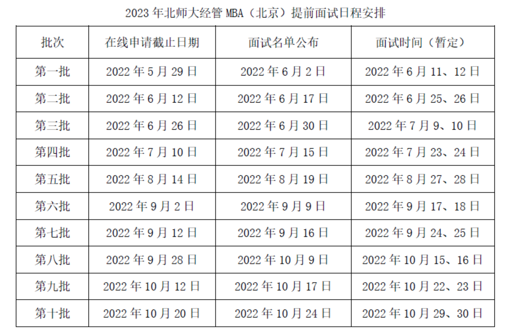 *注:因為全國統(tǒng)考后不再組織面試,沒有通過2023年北師大經(jīng)管MBA(北京)提前面試獲得“條件錄取資格”的考生請不要在全國統(tǒng)考報名時報考北師大經(jīng)管MBA(北京)。